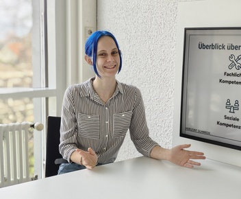 Sie hat kürzlich ihr Masterstudium zum Thema Erwachsenenbildung beendet und gibt selbstständig Seminare zu Softskillthemen.